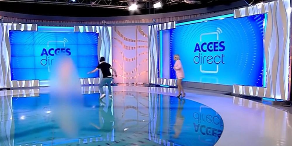 Τη γυμνή εισβολέα σταμάτησε ένας άλλος εργαζόμενος στην τηλεοπτική εκπομπή, που βρισκόταν στο στούντιο εκείνη τη στιγμή.