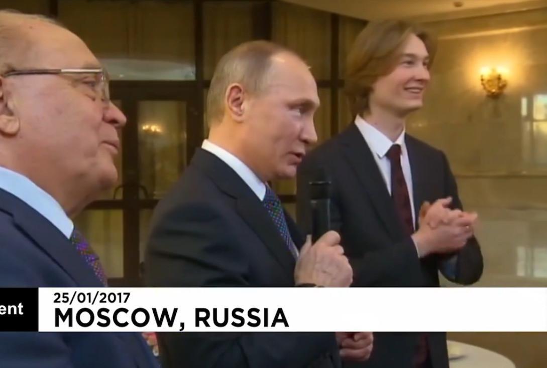 «Στα σκονισμένα μονοπάτια μακρινών πλανητών θα μείνουν ανεξίτηλα τα χνάρια μας», τραγούδησε με τους φοιτητές ο Ρώσος πρόεδρος, όταν ένας από αυτούς – ο οποίος έπαιζε και κιθάρα – εμφανώς αγχωμένος από την παρουσία του Πούτιν… ξέχασε τα λόγια.