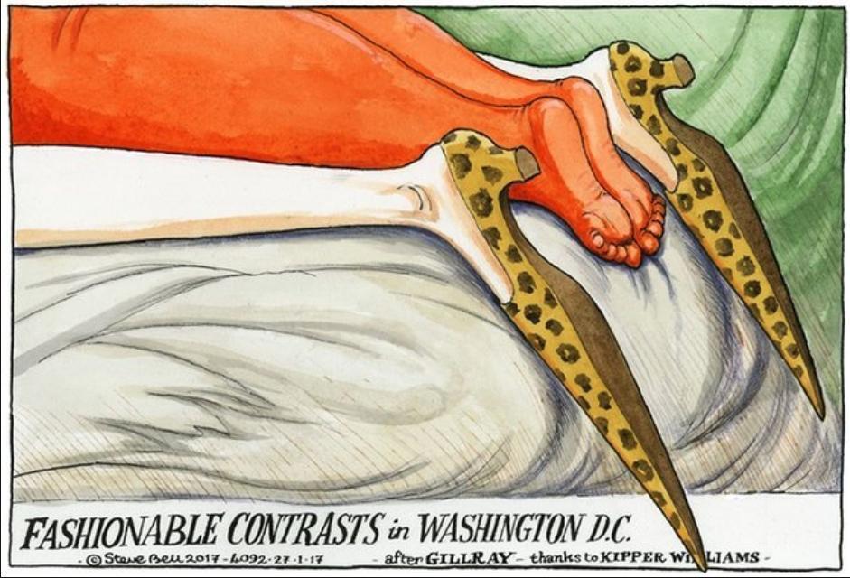 Στη λεζάντα γράφει: «Μοδάτες αντιθέσεις στην Ουάσιγκτον»