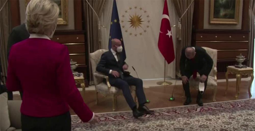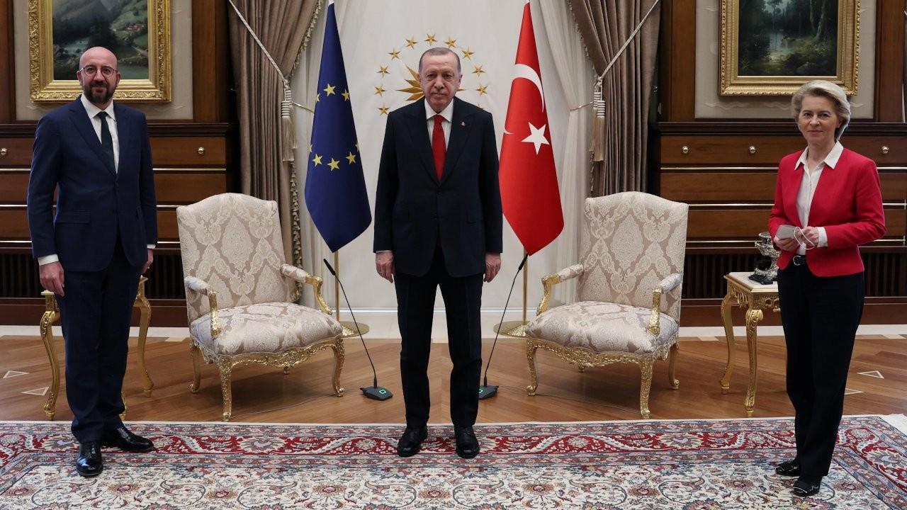 Στην ίδια «γραμμή», η φιλοκυβερνητική τουρκική εφημερίδα Sabah μεταδίδει -επικαλούμενη πηγές από την Άγκυρα- ότι η ΕΕ είναι υπεύθυνη για το περιστατικό κι ότι οι υπηρεσίες πρωτοκόλλου των Βρυξελλών είχαν υποδείξει πριν τη συνάντηση τις θέσεις των Ερντογάν, Σαρλ Μισέλ και Φον ντερ Λάιεν.