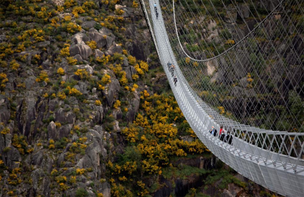 Κρυμμένη ανάμεσα στα βουνά, μέσα στο αναγνωρισμένο από την Unesco Γεωπάρκο της Αρούκας, η γέφυρα κρέμεται από ύψος 175 μέτρων, πάνω από τον ποταμό Πάιβα.
