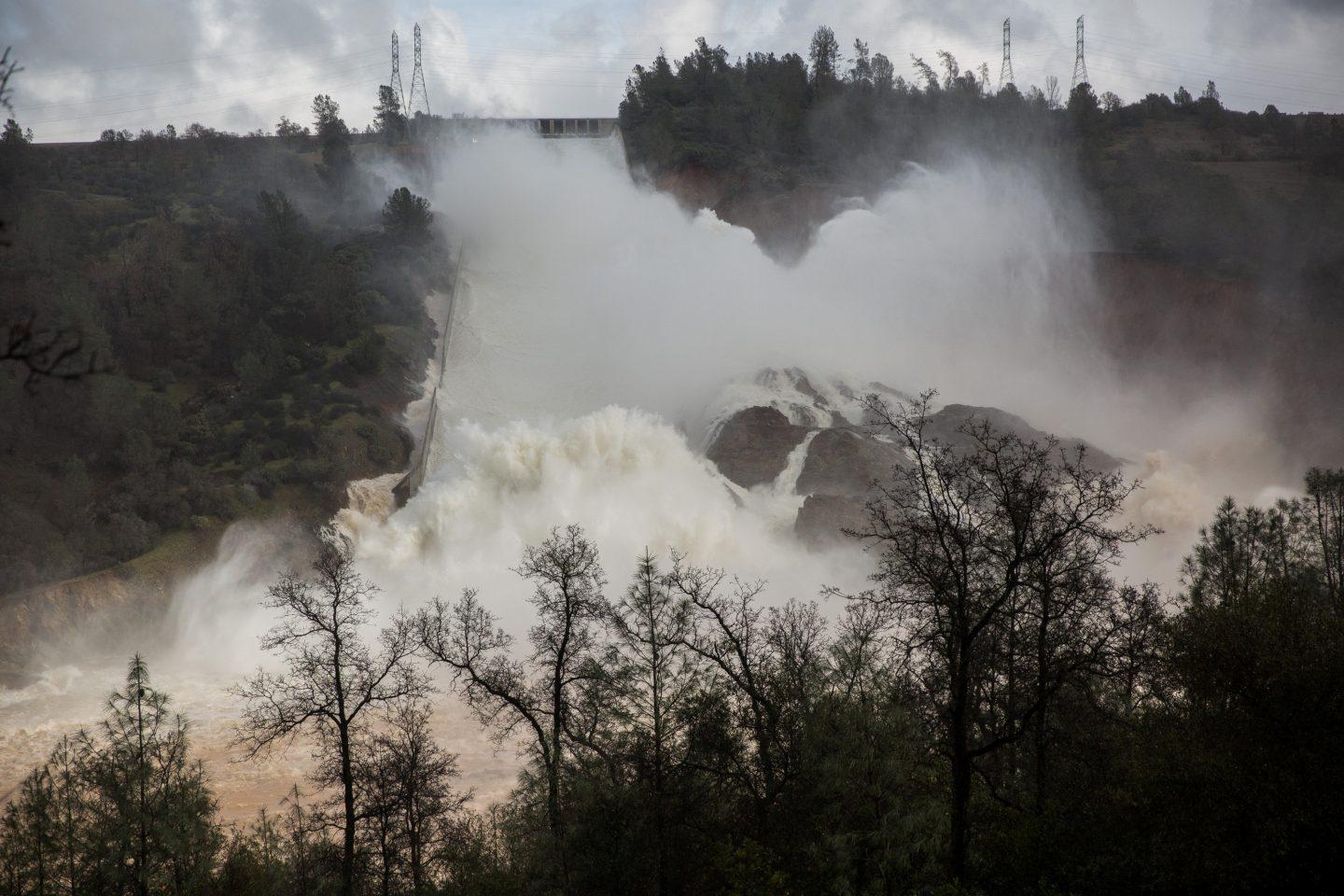 Οι αρχές έχουν ξεκινήσει ήδη να απελευθερώνουν νερό από το φράγμα περίπου 241 χιλιόμετρα βορειανατολικά του Σαν Φρανσίσκο όταν εντόπισαν ότι λείπουν μεγάλα κομμάτια σκυροδέματος από την βοηθητική εγκατάσταση.