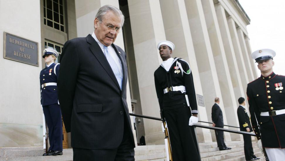 Ο Ράμσφελντ, ιστορικό στέλεχος των Ρεπουμπλικανών, έγινε γνωστός κυρίως ως πανίσχυρος πρώην υπουργός Άμυνας των ΗΠΑ την περίοδο 2001-2006 και βασικός αρχιτέκτονας του πολέμου στο Ιράκ, πριν ο πρόεδρος Τζορτζ Μπους τον αντικαταστήσει.