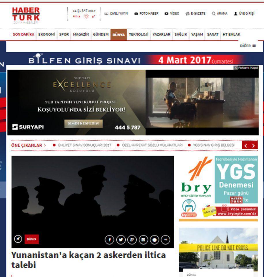 Ενώ το Haber Turk κυκλοφορεί με τίτλο: « Αίτημα ασύλου από τους 2 τούρκους στρατιώτες που διέφυγαν στην Ελλάδα»