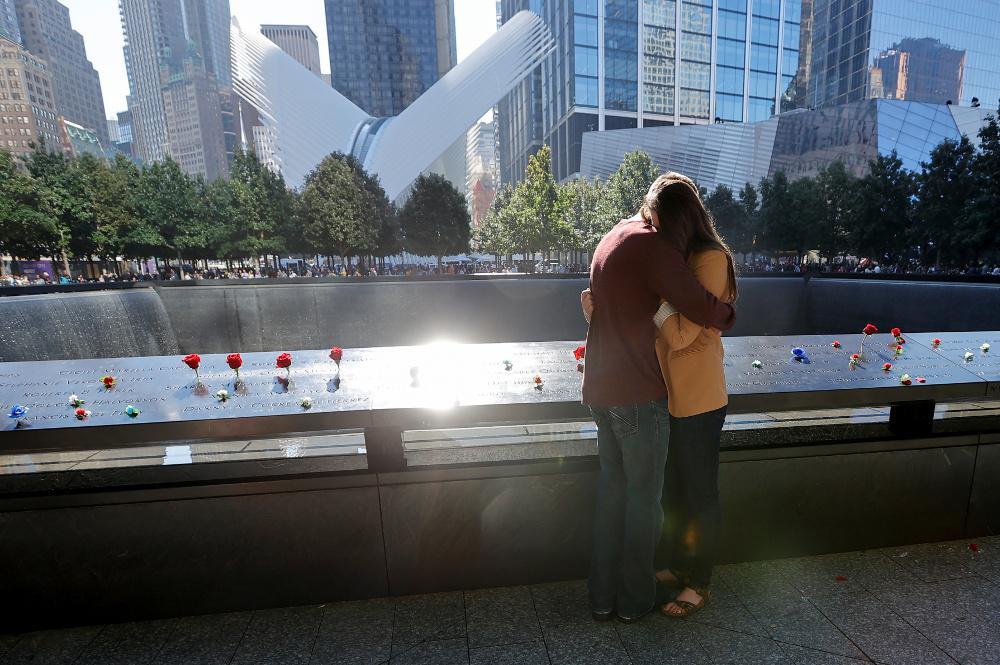Ο Μάικ Λόου, που έχασε την κόρη του Σάρα, αεροσυνοδό στο αεροσκάφος αυτό, μίλησε από το βήμα του μνημείου, ανάμεσα στα δέντρα, για «έναν τόπο μνήμης που προσφέρει γαλήνη». Για τις επόμενες τρεις ώρες οι συγγενείς των θυμάτων διαδέχονταν ο ένας τον άλλον διαβάζοντας, συχνά με λυγμούς, τα ονόματα των δικών τους ανθρώπων, των συνολικά 2.977 θυμάτων που σκοτώθηκαν στις επιθέσεις, εκ των οποίων οι 2.753 στη Νέα Υόρκη.