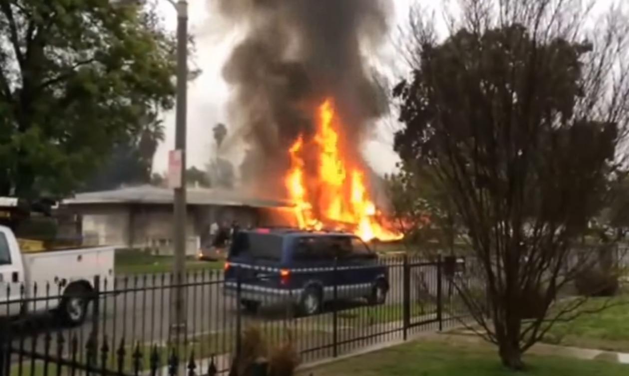 Πρόκειται για αεροπλάνο τύπου Τσέσνα 310, το οποίο κατέπεσε σε κατοικημένη περιοχή κοντά στο αεροδρόμιο του Ριβερσάιντ. Ωστόσο, αυτή την ώρα η Πυροσβεστική υπηρεσία δεν είναι σε θέση να αναγνωρίσει, αν τα θύματα προέρχονται από το αεροπλάνο ή από τα σπίτια.