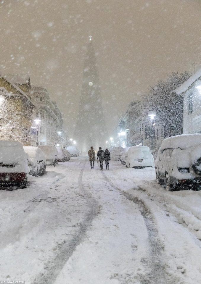 Στην πρωτεύουσα της Ισλανδίας σημειώθηκε τον φετινό Φεβρουάριο ρεκόρ χιονόπτωσης καθώς μέσα σε ελάχιστα λεπτά το το ύψος του χιονιού έφτασε στα 51 εκατοστά και η μοναδική φορά που υπήρξε στυην περιοχή περισσότερο χιόνι φτάνει πίσω στον μακρινό Ιανουάριο του 1937 όταν το χιόνι είχε φτάσει στα 55 εκατοστά.