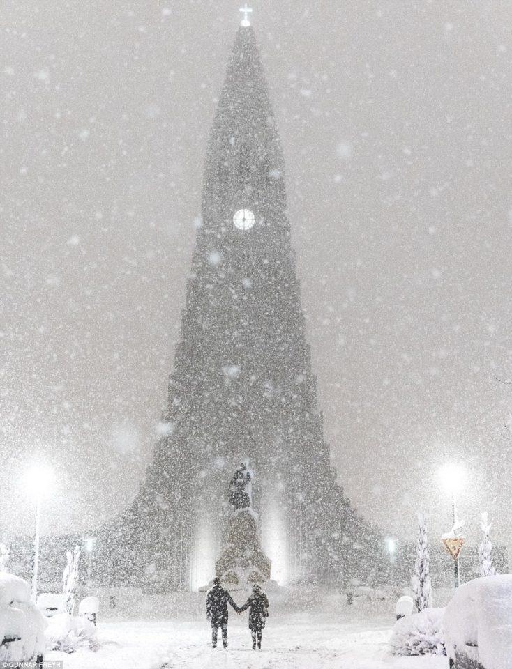 Τις εντυπωσιακές εικόνες κατέγραψε ο Ισλανδός φωτογράφος Gunnar Freyr και μιλώντας στο BBC τόνισε: «Ηταν πολύ διασκεδαστικό να φωτογραφίζω τα άτομα που φαινόταν πολύ ενθουσιασμένα από τις καιρικές συνθήκες. Πολλά ζευγάρια περπατούσαν κρατώντας τα χέρια τους ζώντας τον ρομαντισμό τους μέσα στο χιόνι.Ηταν δύσκολη δουλειά επειδή η φωτογραφική μου μηχανή καλύπτονταν με χιόνι, αλλά υπήρχε τόσο πολύ φως από το χιόνι που αντανακλούσε και δημιούργησε τις ιδανικές συνθήκες για φωτογράφηση τη νύχτα».