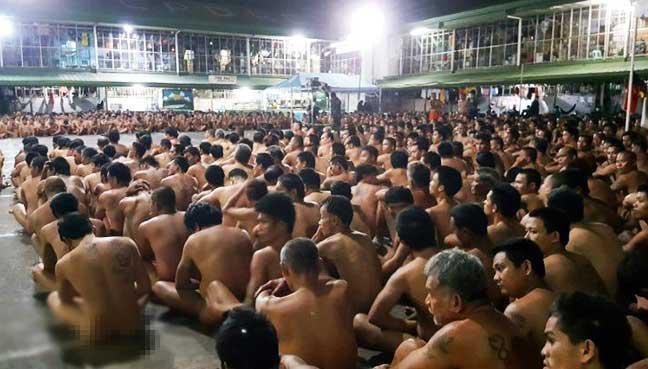Από τις φωτογραφίες που έδωσαν στη δημοσιότητα η Υπηρεσία Καταπολέμησης Ναρκωτικών και η τοπική αστυνομία φαίνονται κρατούμενοι γυμνοί, καθισμένοι οκλαδόν στο τσιμέντο της αυλής υπό το φως προβολέων την ώρα που ένοπλοι αστυνομικοί τους φυλάνε.