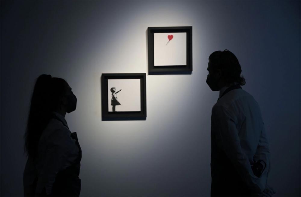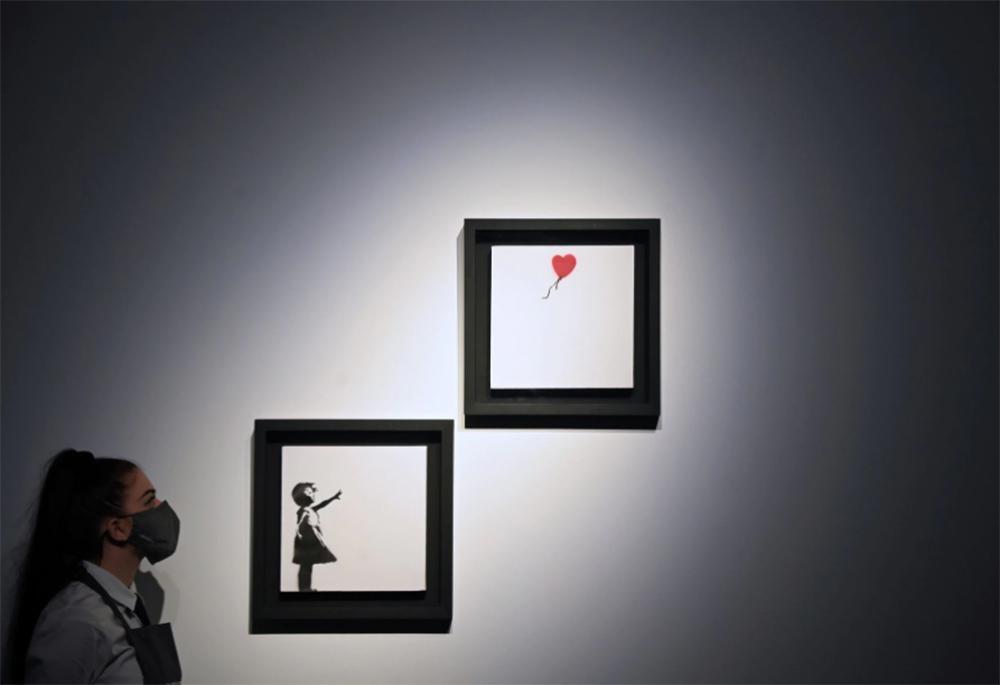 Στην ίδια αίθουσα πριν από τρία χρόνια, οι παρευρισκόμενοι ανατρίχιασαν όταν δευτερόλεπτα μετά την πώλησή του έργου «Το Κορίτσι με το Μπαλόνι», αντί 1.042.000 στερλινών, καταστροφέας εγγράφων που ήταν κρυμμένος στο πλαίσιο του πίνακα κατέστρεψε το μισό κάτω μέρος του που δείχνει ένα κοριτσάκι να κρατά ένα κόκκινο μπαλόνι σε σχήμα καρδιάς. Στο τέλος του happening, αυτό που έμεινε ακέραιο από τον πίνακα ήταν μόνο το μπαλόνι σε άσπρο φόντο.
