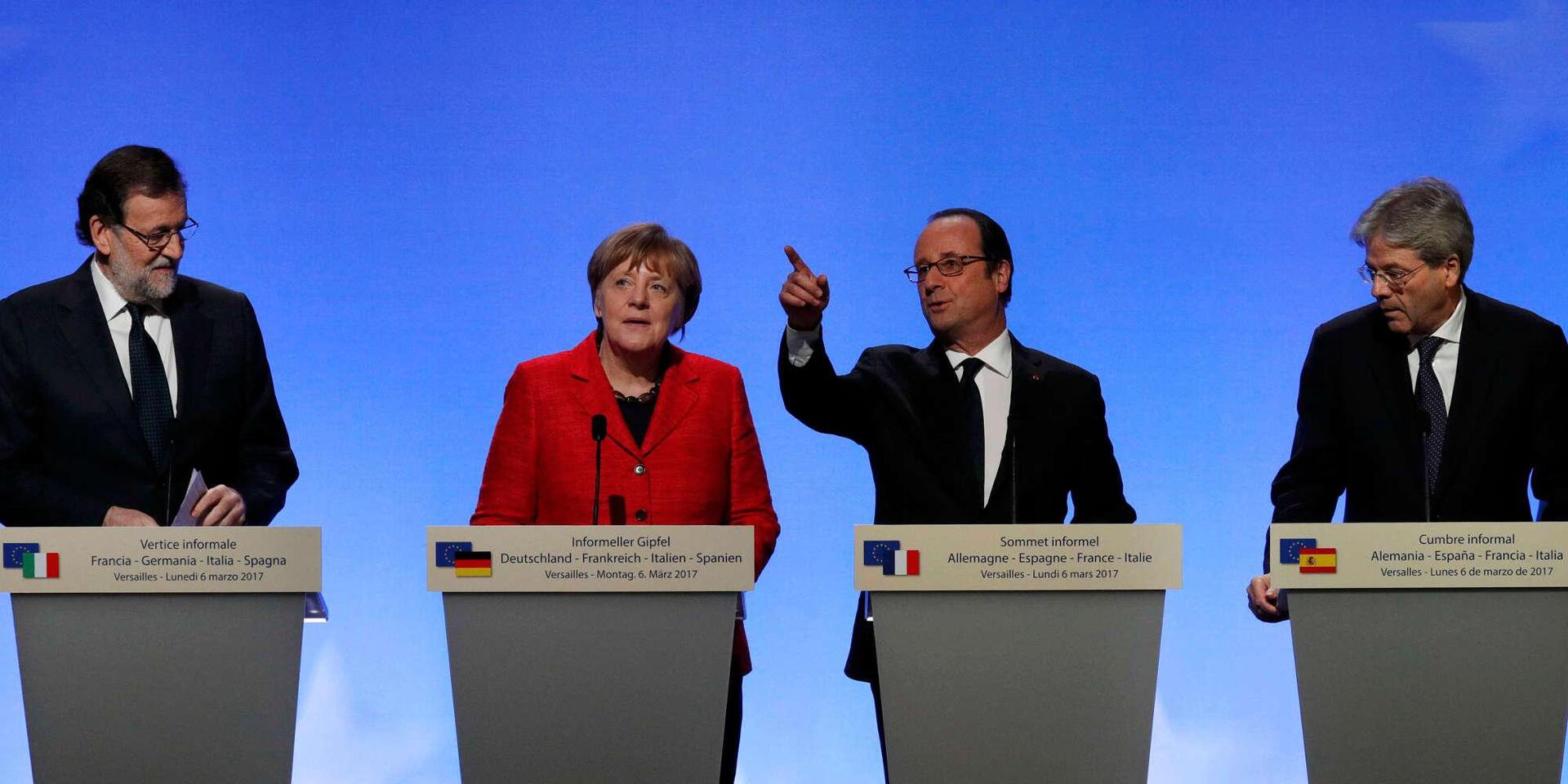 «Η ενότητα δεν σημαίνει ομοιομορφία» υπογράμμισε ο Γάλλος πρόεδρος Φρανσουά Ολάντ, ο οικοδεσπότης αυτής της μίνι συνόδου κορυφής στις Βερσαλλίες, στην οποία συμμετείχαν επίσης η καγκελάριος της Γερμανίας Άνγκελα Μέρκελ και οι πρωθυπουργοί της Ισπανίας και της Ιταλίας, Μαριάνο Ραχόι και Πάολο Τζεντιλόνι.
