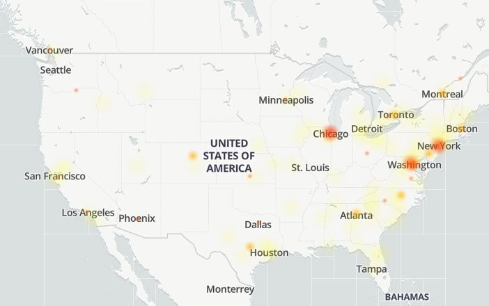Η εφαρμογή καταγράφει προβλήματα σε περιοχές της βόρειας Αμερικής, της Ευρώπης και στην Ασία.