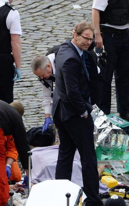 Ο Βρετανός βουλευτής, βουτηγμένο μέχρι το πρόσωπο στο αίμα, παρέμεινε στο σημείο μέχρι και την έλευση του ελικοπτέρου-ασθενοφόρου, με το οποίο μεταφέρθηκε εσπευσμένα στο νοσοκομείο ο μαχαιρωμένος φρουρός.