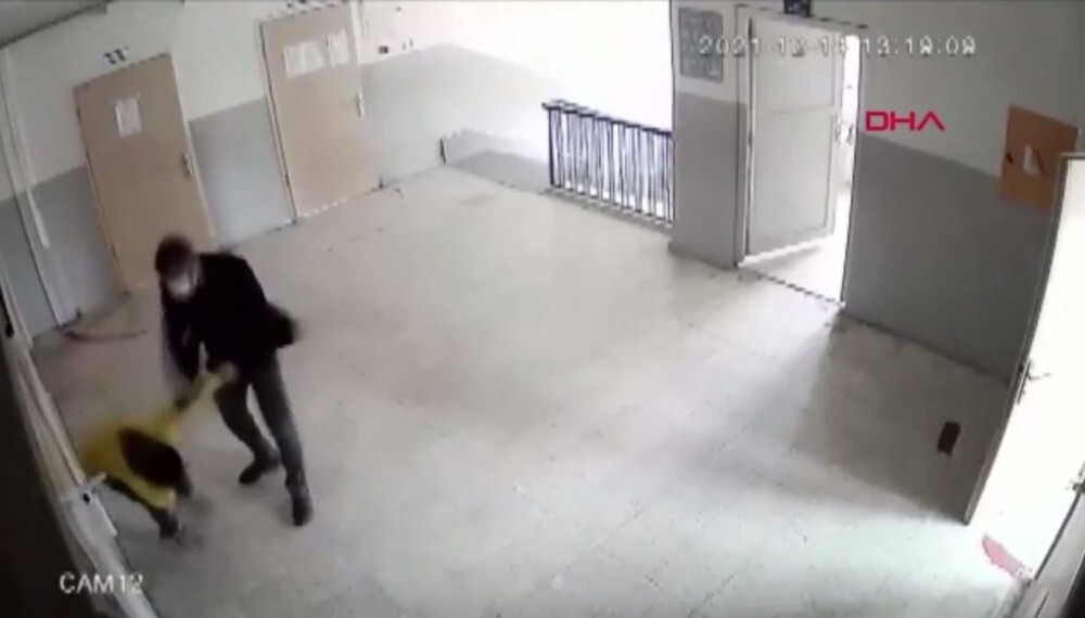Εκείνη τη στιγμή ακούει τις φωνές η καθηγήτρια σχεδιασμού και τεχνολογίας Γκιουλτζάν Ουνλού που δίδασκε σε διπλανή αίθουσα, βγαίνει στον διάδρομο και σώνει το παιδί από τον αδίστακτο δάσκαλό του.