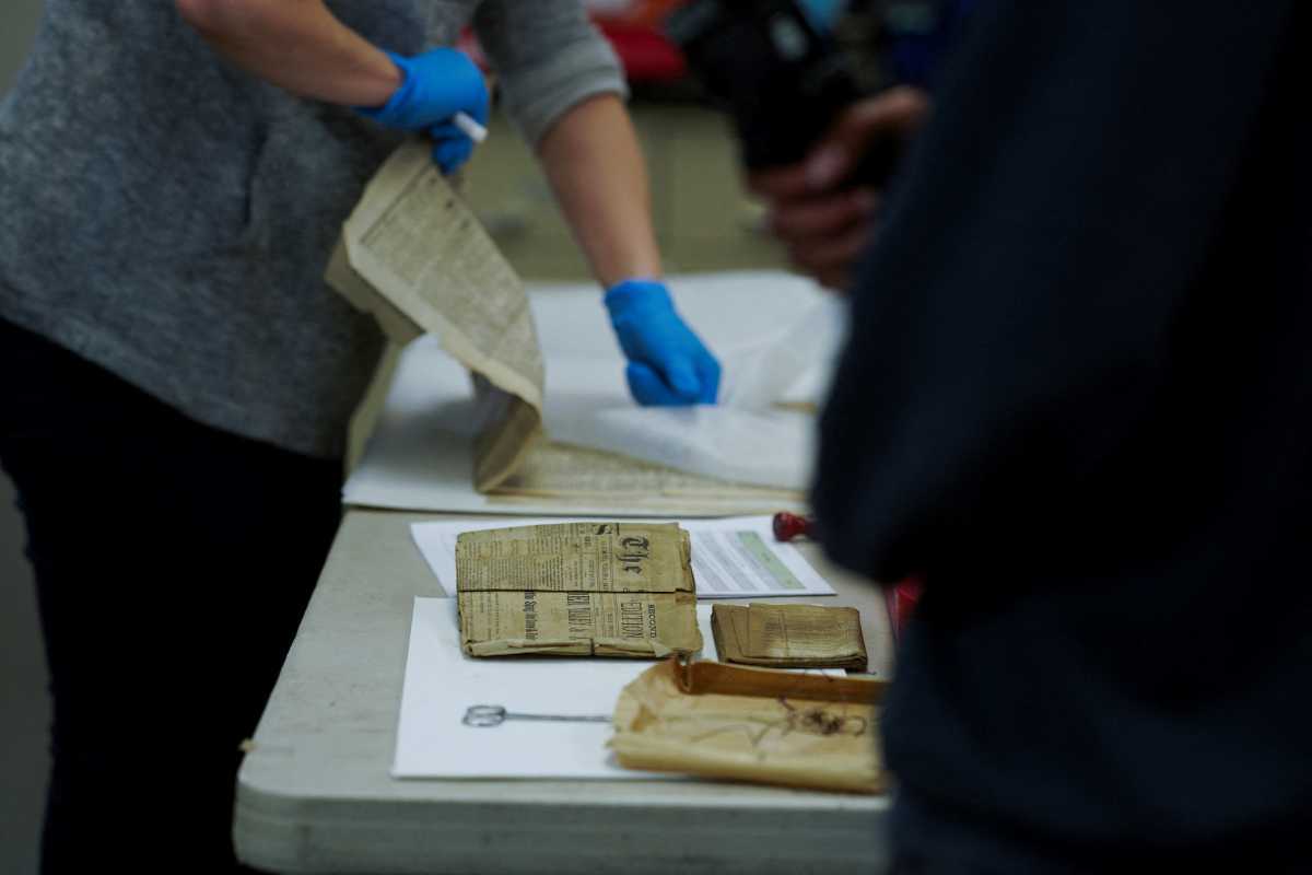 Το περιεχόμενο του κουτιού είναι «σε καλύτερη κατάσταση απ’ όσο θα περιμέναμε», σχολίασε η Κέιτ Ρίτζγουεϊ, η υπεύθυνη της υπηρεσίας, καθώς άνοιγε με μεγάλη προσοχή τη μεταλλική χρονοκάψουλα.