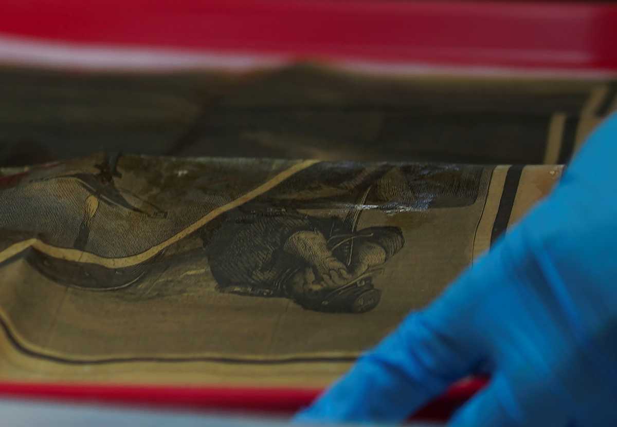 Το χαρακτηριστικότερο αντικείμενο ήταν το σχέδιο μιας γυναίκας, γονατισμένης μπροστά στο φέρετρο του προέδρου Αβραάμ Λίνκολν, ο οποίος δολοφονήθηκε στις 14 Απριλίου 1865. Το σκίτσο αυτό είχε δημοσιευτεί στο περιοδικό Harper’s Weekly δύο εβδομάδες αργότερα.