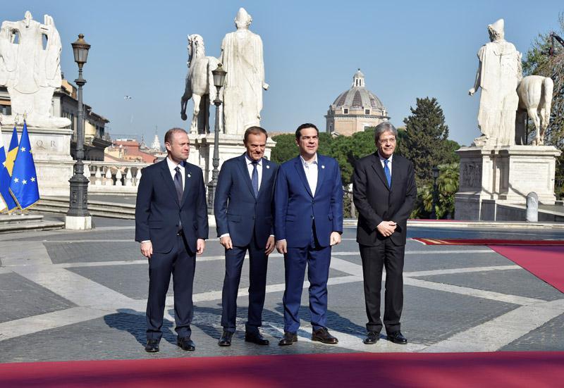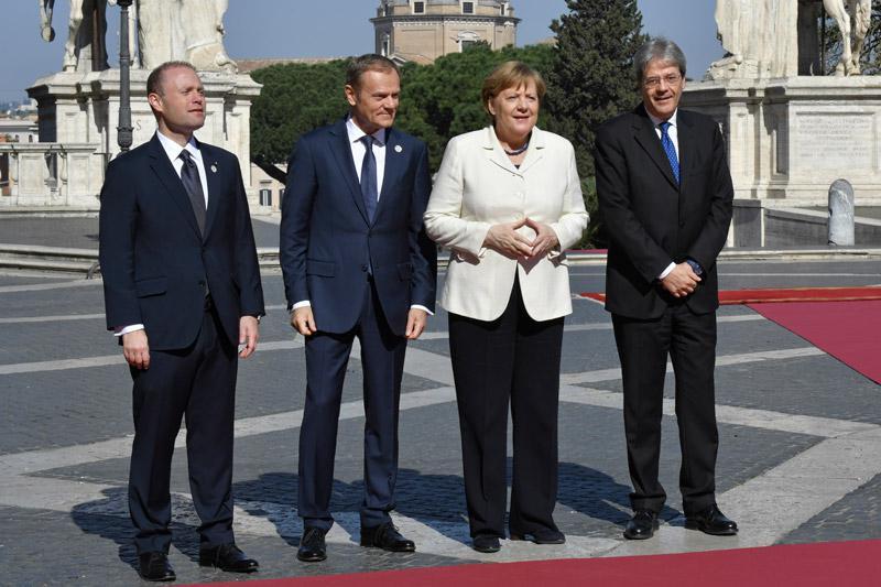 «Πρέπει να είμαστε περήφανοι για την Ευρώπη», δήλωσε ο πρόεδρος της Ευρωπαϊκής Επιτροπής, Ζαν Κλοντ Γιούνκερ, μιλώντας πριν την έναρξη της τελετής για την υπογραφή της Διακήρυξης της Ρώμης. Ο κ. Γιούνκερ αναφέρθηκε εκτενώς στα μεγάλα επιτεύγματα της Ευρώπης, τα οποία όμως συχνά οι ίδιοι οι Ευρωπαίοι τα «ξεχνούν» αλλά στην Αφρική και την Ασία υπάρχει «αυξανόμενη αποδοχή».