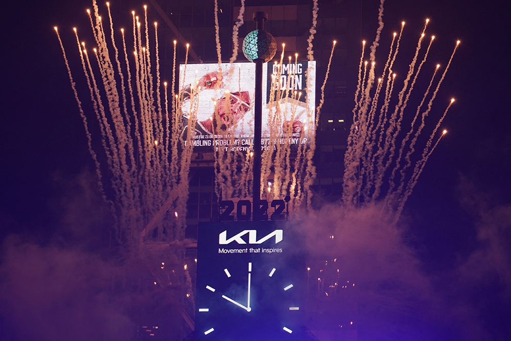 Η φωτισμένη μπάλα από φύλλα κρυστάλλου Waterford κύλησε τα μεσάνυχτα στην Τάιμς Σκουέρ, αλλά μόνο 15.000 θεατές επιτρεπόταν να βρίσκονται στην περιοχή απ’ όπου μπορούσαν να παρακολουθήσουν το θέαμα, αντί για 58.000 συνήθως.