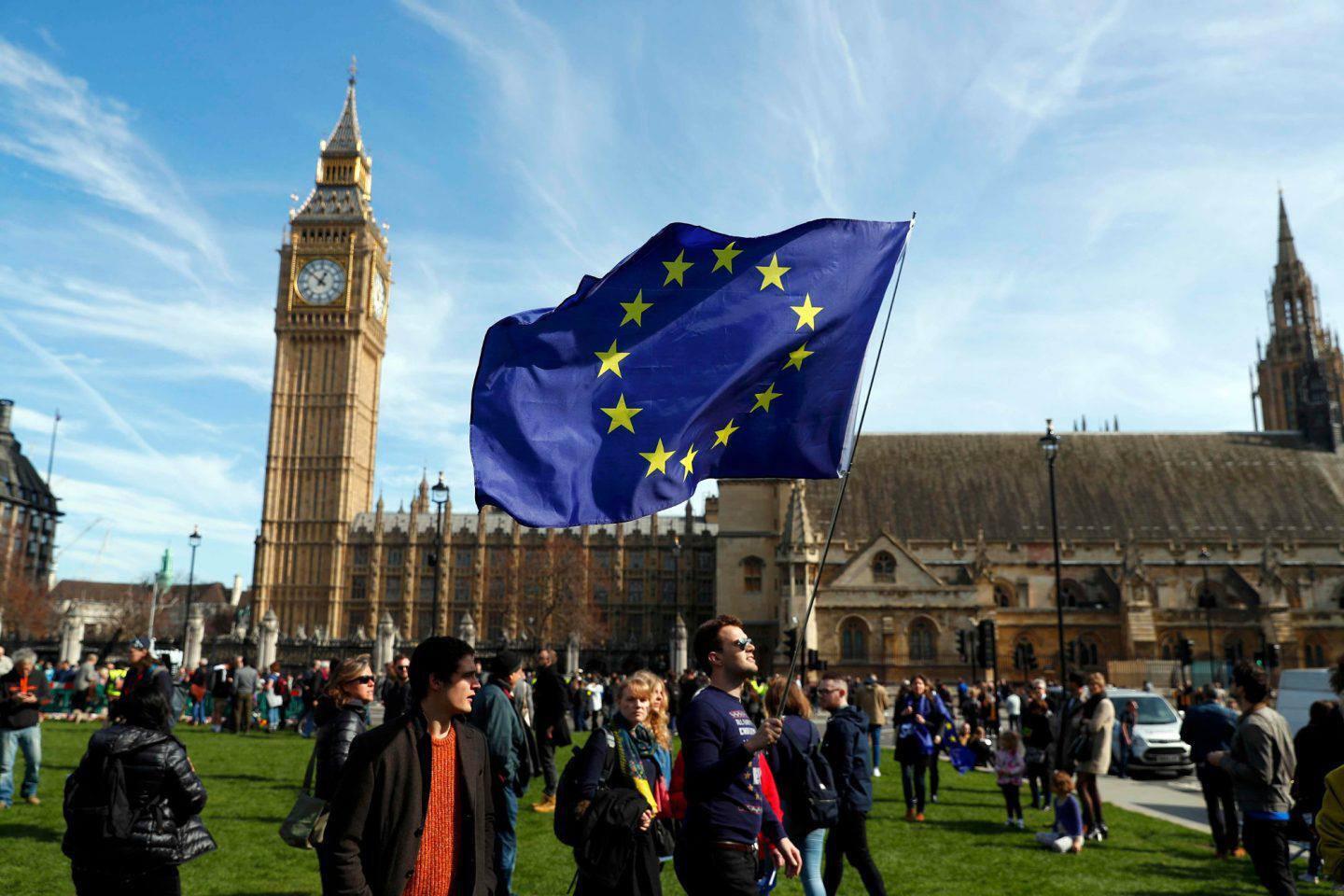 Την ίδια ώρα, πολλοί κρατούσαν σημαίες της Ευρωπαϊκής Ένωσης και πανό με συνθήματα όπως «Ποιο είναι το σχέδιο» και «Σταματήστε το Brexit», καθώς κατευθύνονταν προς το κοινοβούλιο.