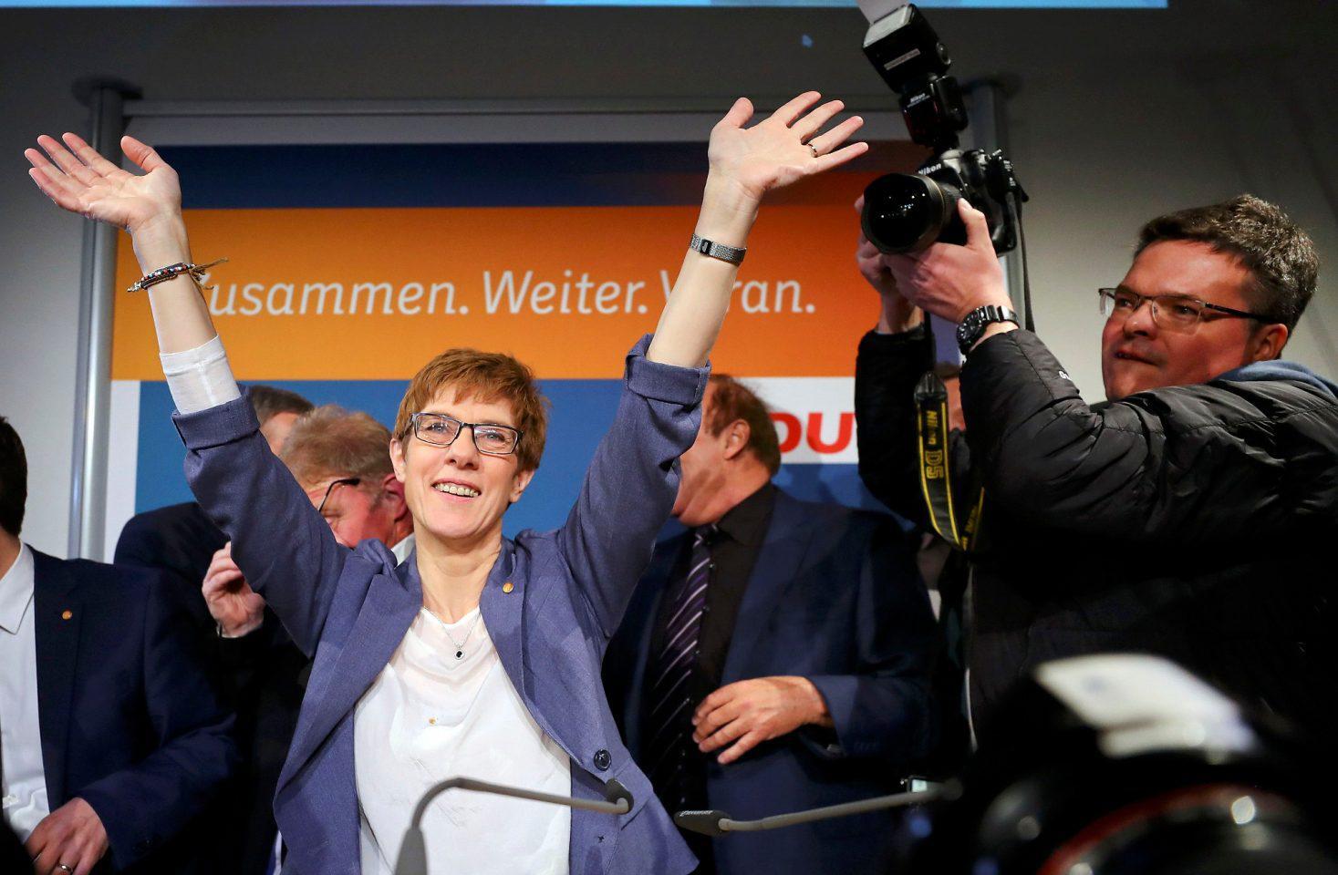 Σε αυτό το παραδοσιακό κάστρο των Χριστιανοδημοκρατών ωστόσο, στις τοπικές εκλογές που πραγματοποιήθηκαν χθες, η δύναμη του CDU και της Καρενμπάουερ αυξήθηκε πάνω απ’ το 40% διάγοντας θρίαμβο.