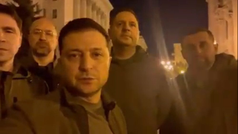«Εδώ είμαστε. Είμαστε στο Κίεβο. Υπερασπιζόμαστε την Ουκρανία», λέει ο Ουκρανός πρόεδρος Ζελένσκι σε βίντεο που ανήρτησε από τους δρόμους της Ουκρανικής πρωτεύουσας.