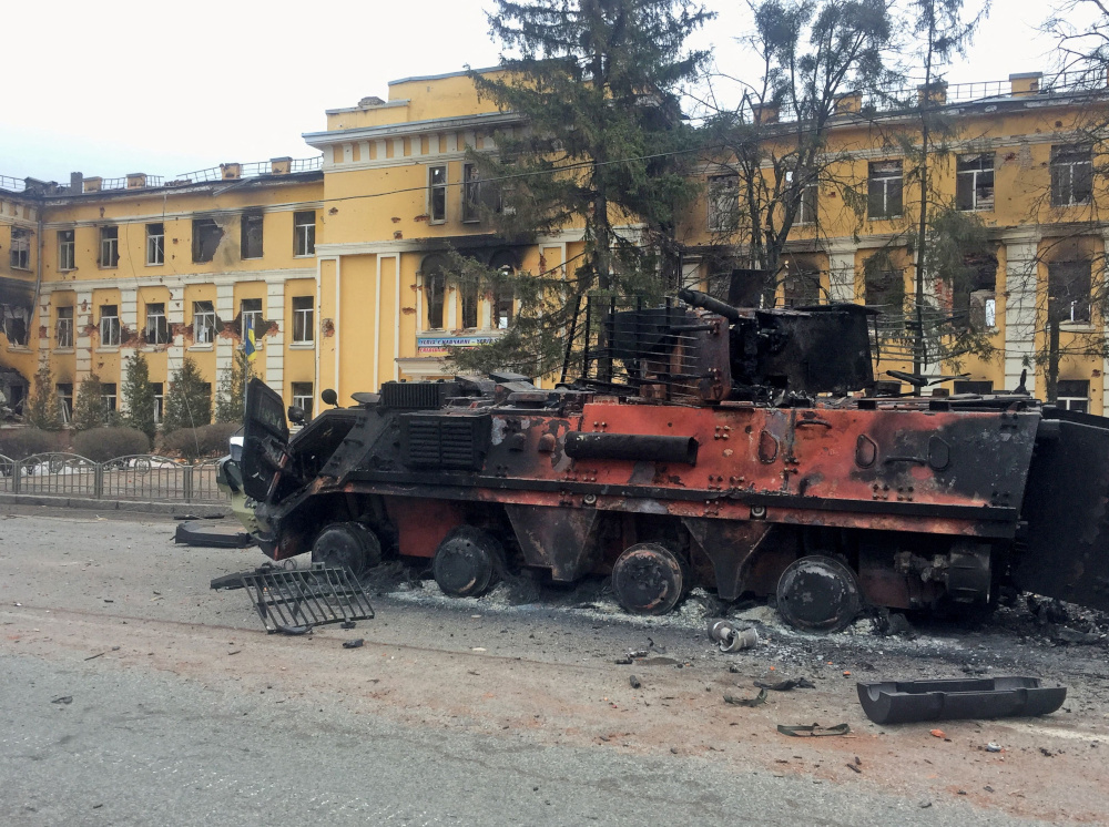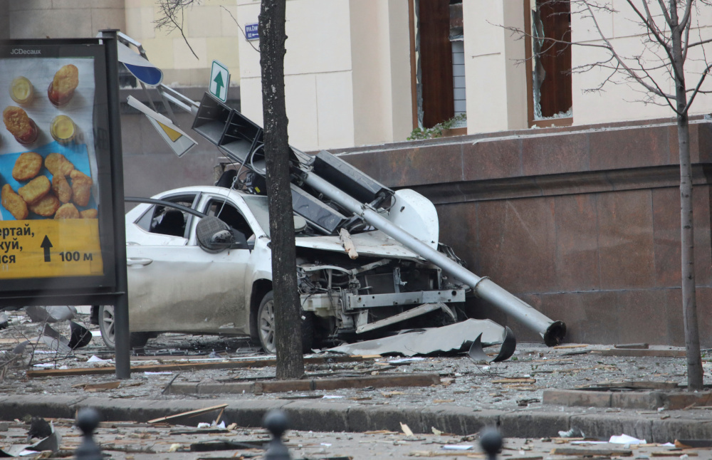 Το κτίριο του δημοτικού συμβουλίου του Χαρκόβου δέχθηκε πλήγμα από πύραυλο, με αποτέλεσμα να υποστεί τεράστιες ζημιές.