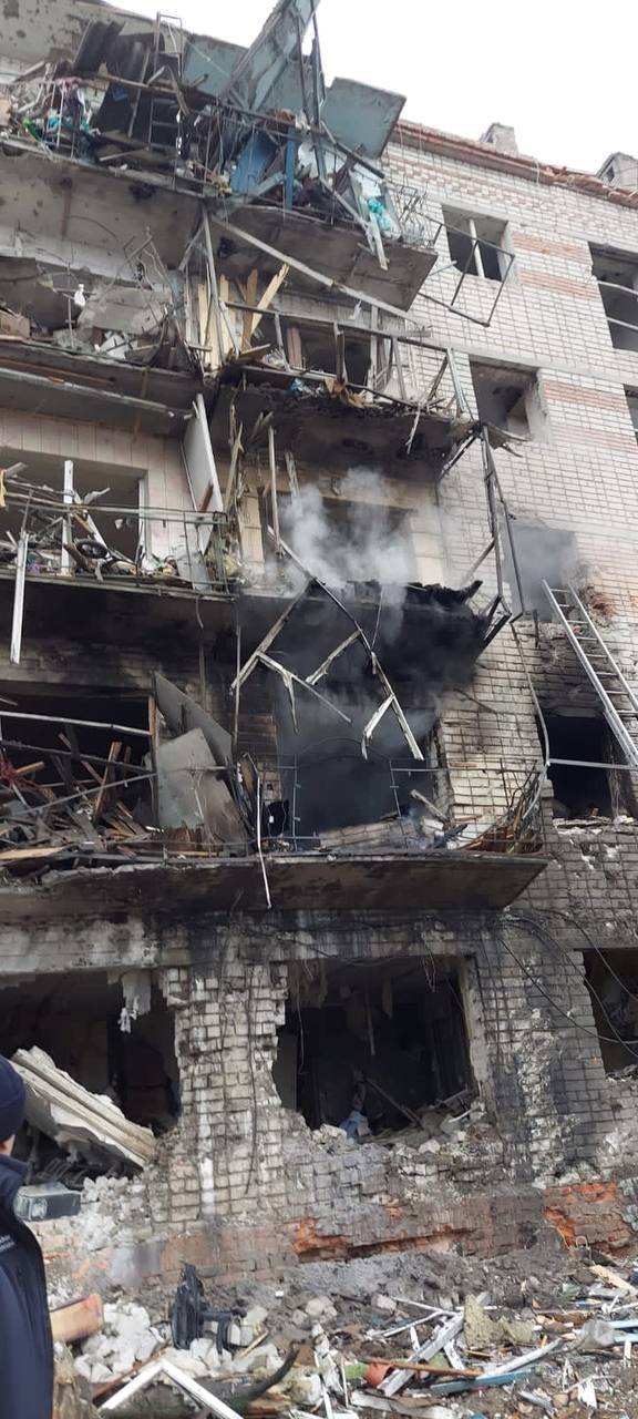 Η ουκρανική υπηρεσία αντιμετώπισης εκτάκτων περιστατικών ανέφερε στο Facebook ότι «οκτώ άνθρωποι σκοτώθηκαν, έξι τραυματίστηκαν και 38 διασώθηκαν» μετά το πλήγμα που δέχτηκε ένα κτίριο διαμερισμάτων. Έδωσε μάλιστα στη δημοσιότητα φωτογραφίες στις οποίες διακρίνονται οι διασώστες να εργάζονται σε ένα κτίριο, εμφανώς κατεστραμμένο.