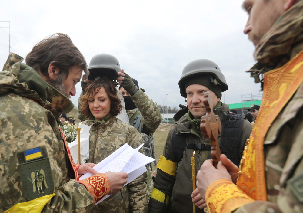Την ώρα που γίνονται όλα αυτά μια ακτίδα φωτός μέσα από τις από τις εκρήξεις και το αίμα του πολέμου είναι ο γάμος ενός ζευγαριού που υπηρετούν στις Ουκρανικές Δυνάμεις Εδαφικής Άμυνας ( σ.σ. Πεζικό). Πρόκειται για τους Lesia Ivashchenko and Valerii Fylymonov οι οποίοι παντρεύτηκαν μέσα στο μέτωπο και κυριολεκτικά μέσα στα χαρακώματα με τους.