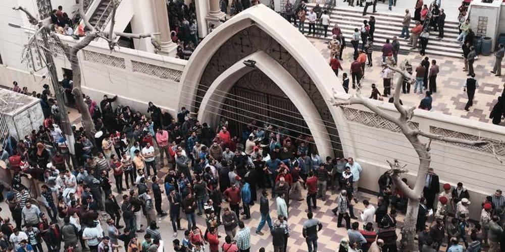 Η πρώτη βόμβα εξερράγη στην κοπτική εκκλησία του Αγίου Γεωργίου (Μαρ Γκίργκις) της Τάντα, στο Δέλτα του Νείλου. Σκοτώθηκαν επιτόπου 27 πιστοί και η εκκλησία έμοιαζε με σφαγείο από το αίμα των χριστιανών. Λίγες ώρες αργότερα, βομβιστής-καμικάζι πυροδότησε τα εκρηκτικά του έξω από τον Αγιο Μάρκο της Αλεξάνδρειας. Από την έκρηξη σκοτώθηκαν πάνω από 18 άνθρωποι και ανάμεσά τους οι 4 αστυνομικοί που φρουρούσαν την εκκλησία και εμπόδισαν τον τζιχαντιστή-καμικάζι να μπει στο κτίριο. Στην εκκλησία βρισκόταν και ο κόπτης Πατριάρχης Ταουάντρος Β’ (Θεόδωρος), ο οποίος απομακρύνθηκε ασφαλής. Οι δυνάμεις ασφαλείας της Αιγύπτου εξουδετέρωσαν στη συνέχεια άλλους δύο εκρηκτικούς μηχανισμούς στο τέμενος Αμπντέλ Ραχίμ της πόλης Τάντα.
