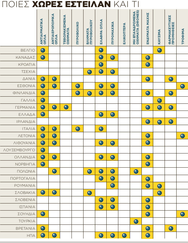 Το διαπιστώνει κανείς από τον πίνακα των «Financial Times» που δημοσιεύεται παραπλεύρως, ο οποίος ειρήσθω εν παρόδω περιέχει και μια ανακρίβεια: Η Τουρκία κακώς συμπεριλαμβάνεται στις νατοϊκές χώρες που έστειλαν στρατιωτική βοήθεια στην Ουκρανία, καθώς το μοναδικό οπλικό σύστημα που παρέδωσε -όχι βέβαια δωρεάν, αλλά έναντι αδράς αμοιβής στο Κίεβο, και μάλιστα πολύ πριν από τη ρωσική εισβολή- ήταν τα μη επανδρωμένα αεροσκάφη Bayraktar, τα οποία καταστράφηκαν σε μεγάλο βαθμό από τους ρωσικούς βομβαρδισμούς.