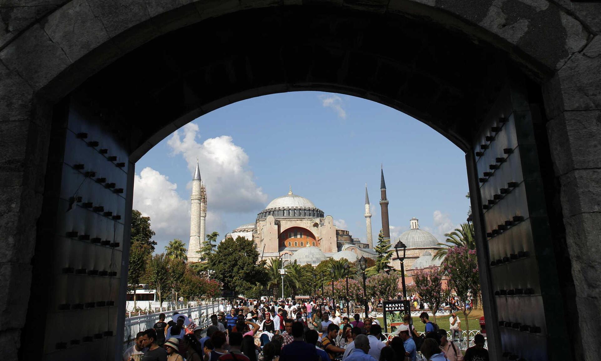Το περασμένο Σαββάτο χιλιάδες μέλη ισλαμικής οργάνωσης νεολαίας συγκεντρώθηκαν έξω από την Αγιά Σοφιά και προσευχήθηκαν με αίτημα την μετατροπή του ιερού μνημείου της χριστιανοσύνης , σε τζαμί.