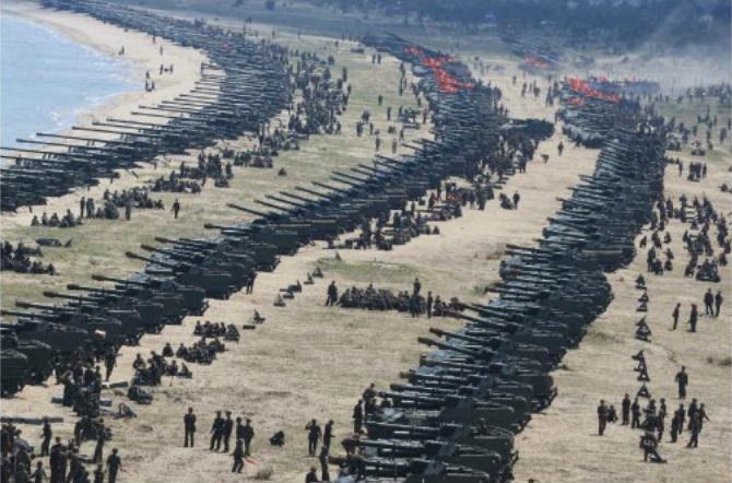 Η κρατική εφημερίδα Rodong Sinmun δημοσίευσε και φωτογραφίες από την τεράστιας κλίμακας άσκηση ενώ στο πρωτοσέλιδο της εφημερίδας παρουσιάζονταν ο Βορειοκορεάτης ηγέτης μέσα στη μαύρη του Μερσεντές, μπροστά από τα παρατεταγμένα στρατεύματα.