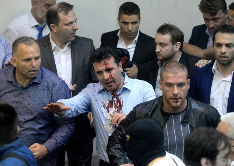 Σύμφωνα με τις πρώτες πληροφορίες τραυματίστηκαν 4 βουλευτές μεταξύ των οποίων και ο επικεφαλής του Σοσιαλδημοκρατικού κόμματος, Ζόραν Ζάεφ.