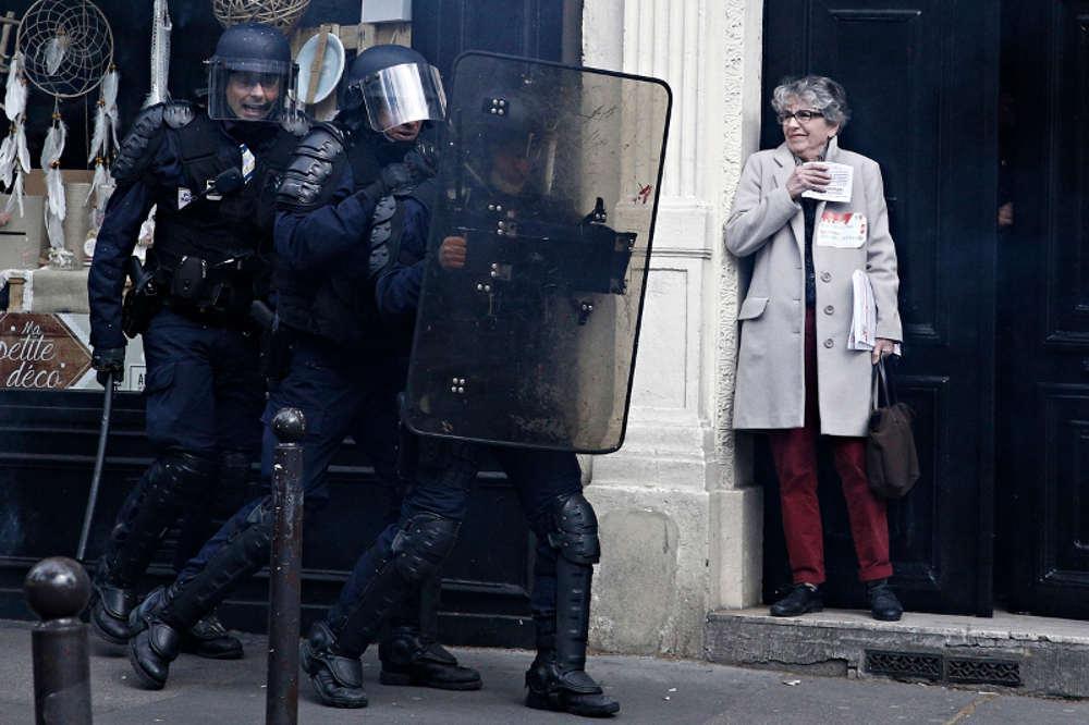 Η πορεία, την οποία οργάνωσαν τέσσερα συνδικάτα με το σύνθημα “Κατά της κοινωνικής οπισθοδρόμησης που τρέφει την ακροδεξιά” αναγκάστηκε να σταματήσει πολλές φορές. Οι νεαροί, στο περιθώριό της, προσπαθούσαν να σπάσουν τον αστυνομικό κλοιό ρίχνοντας αυτοσχέδιες βόμβες και διάφορα αντικείμενα που έβρισκαν επί τόπου εναντίον των ανδρών των δυνάμεων ασφαλείας.
