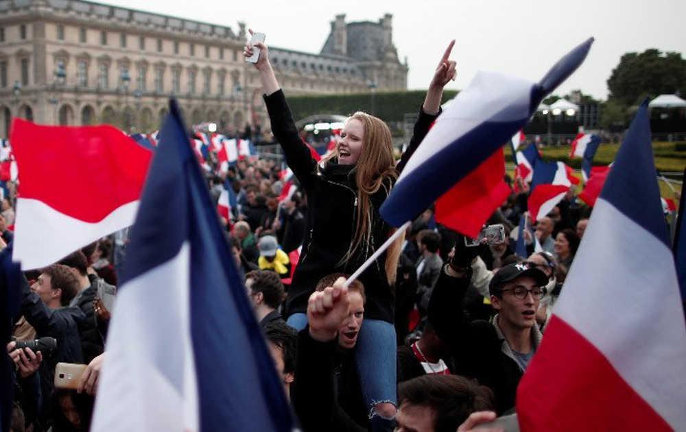 Οι οπαδοί του Μακρόν δεν θα μπορούσαν να μην πανηγυρίσουν έξαλλα τη νίκη του αρχηγού τους.
