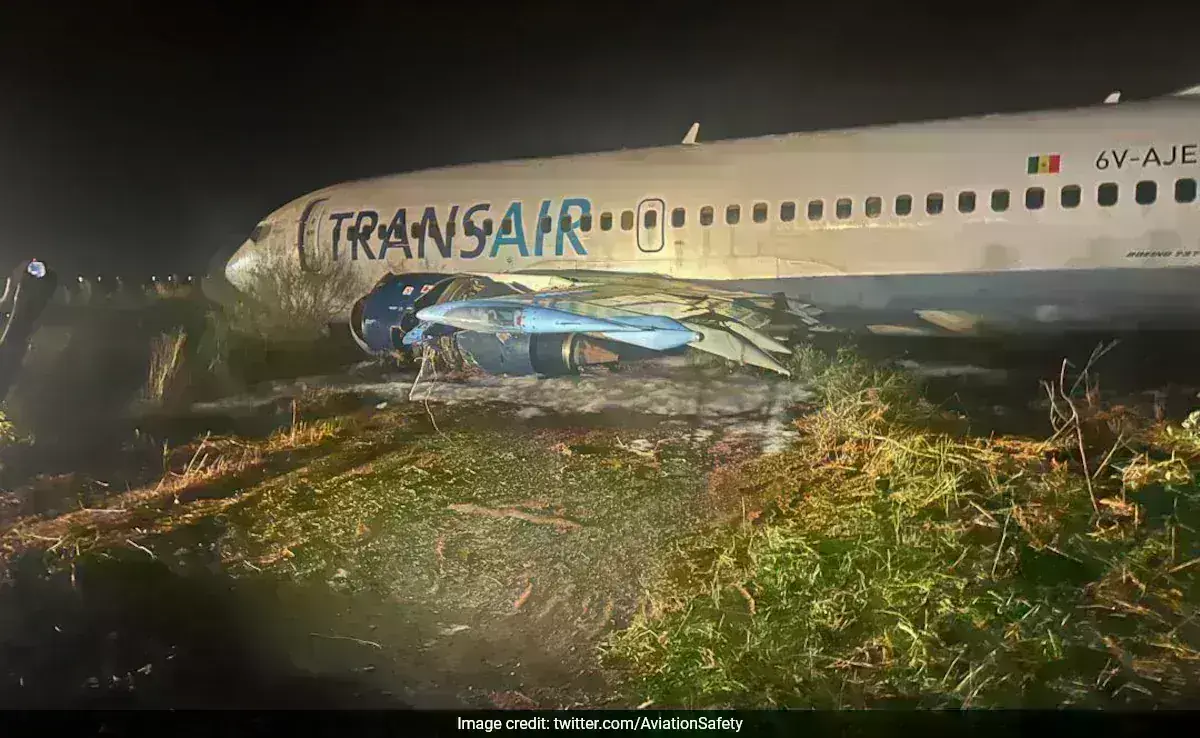 A Transair Boeing 737-38J (6V-AJE) suffered a runway excursion at Dakar Airport, Senegal.pic.twitter.com/AvpQbkfr0d