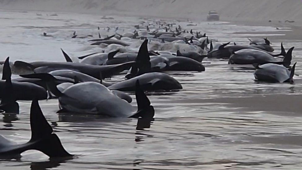 Οι μισές από αυτές θεωρείται πως είναι ζωντανές. Στην περιοχή στέλνονται διασώστες. Οι φάλαινες ανήκουν στο είδος «γλοβικέφαλοι», αλλιώς γνωστές και ως μαυροδέλφινα.