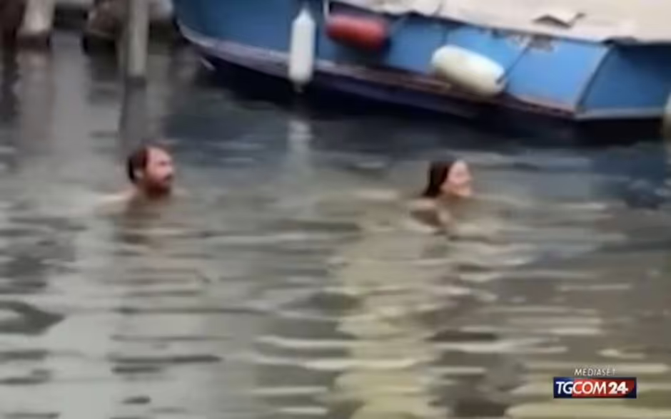 Το ζευγάρι έγινε αντιληπτό από γονδολιέρηδες, οι οποίοι και ειδοποίησαν τις ιταλικές αρχές. Καθώς η κολύμβηση σε οποιοδήποτε από τα 150 κανάλια της Βενετίας απαγορεύεται αυστηρά, επιβλήθηκε σε καθέναν από τους δύο πρόστιμο ύψους 450 ευρώ (περίπου 390 λίρες Αγγλίας), ενώ τους ζητήθηκε να εγκαταλείψουν την πόλη σε 48 ώρες, σύμφωνα με τα ιταλικά μέσα ενημέρωσης.