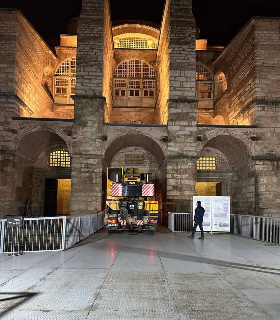 Περιέγραψε το Μεγάλο Τζαμί της Αγίας Σοφίας ως «1486 ετών» και δήλωσε ότι οι προσπάθειες αποκατάστασης και ενίσχυσης βρίσκονται σε εξέλιξη τόσο εντός όσο και εκτός του κτιρίου.