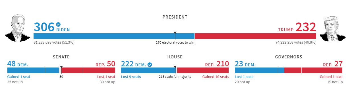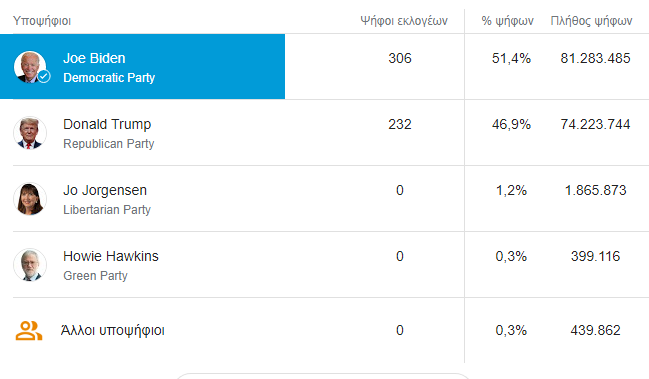 Τελικά, ο Τζο Μπάιντεν ανακηρύσσεται 46ος Πρόεδρος των ΗΠΑ και ο πλανήτης βρίσκεται εν αναμονή της ορκωμοσίας του, στις 20 Ιανουαρίου του 2021.
