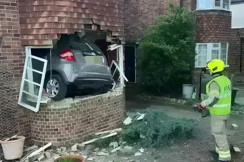 Το επικίνδυνο τρακάρισμα φέρεται να συνέβη όταν ο οδηγός προσπαθούσε να παρκάρει και κατά λάθος πάτησε το γκάζι – στρέφοντας τον κινητήρα κατευθείαν στο σπίτι.