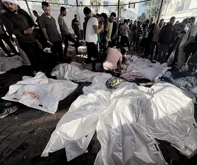 «Όταν έφτασα στο τμήμα επειγόντων περιστατικών, υπήρχαν εκατοντάδες τραυματίες», είπε ο Δρ Ghassan Abu-Sittah. Πήρε έναν ασθενή μέσα από την αυλή σε ένα ασθενοφόρο, όπου είπε ότι «μπορούσε να δει πτώματα σε όλη την αυλή και ακρωτηριασμένα μέλη».