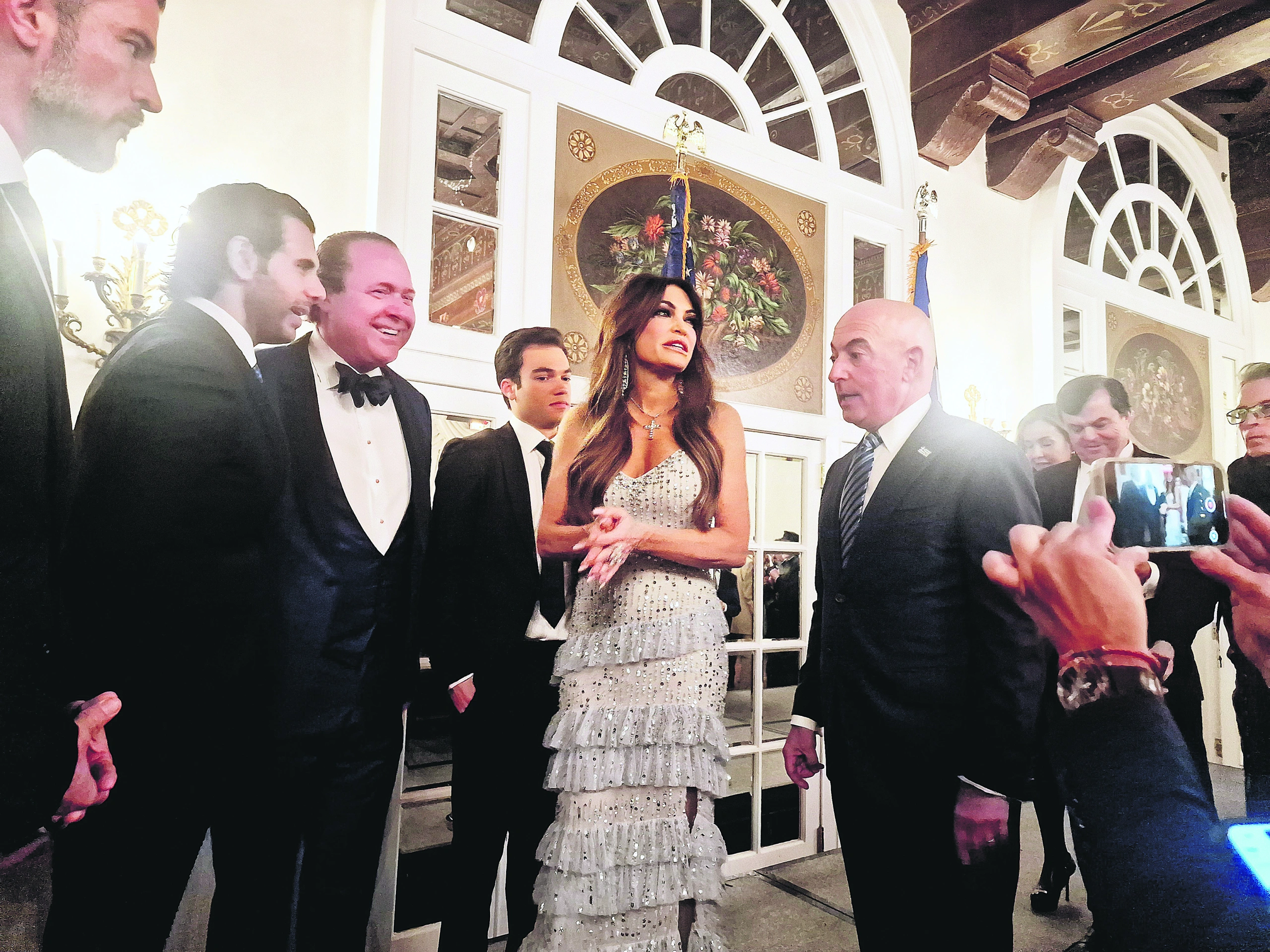 Ο αναπληρωτής υπουργός Εξωτερικών, Μάικλ Ρήγας, ο επικεφαλής Επιστημών και Τεχνολογίας του Λευκού Οίκου, Μάικλ Κράτσιος, ο στενός φίλος και υποστηρικτής του προέδρου, Τζον Κατσιματίδης, η Ελληνίδα μέλος της Βουλής των Αντιπροσώπων, Νικόλ Μαλιωτάκη, αλλά και ο άλλοτε προσωπάρχης του Λευκού Οίκου, Ρέινς Πρίμπους. Στο τέλος της εκδήλωσης προκλήθηκε πανδαιμόνιο όταν εμφανίστηκε στην αίθουσα, προερχόμενη από άλλη εκδήλωση με τον Τραμπ, η Κίμπερλι Γκίλφοϊλ.