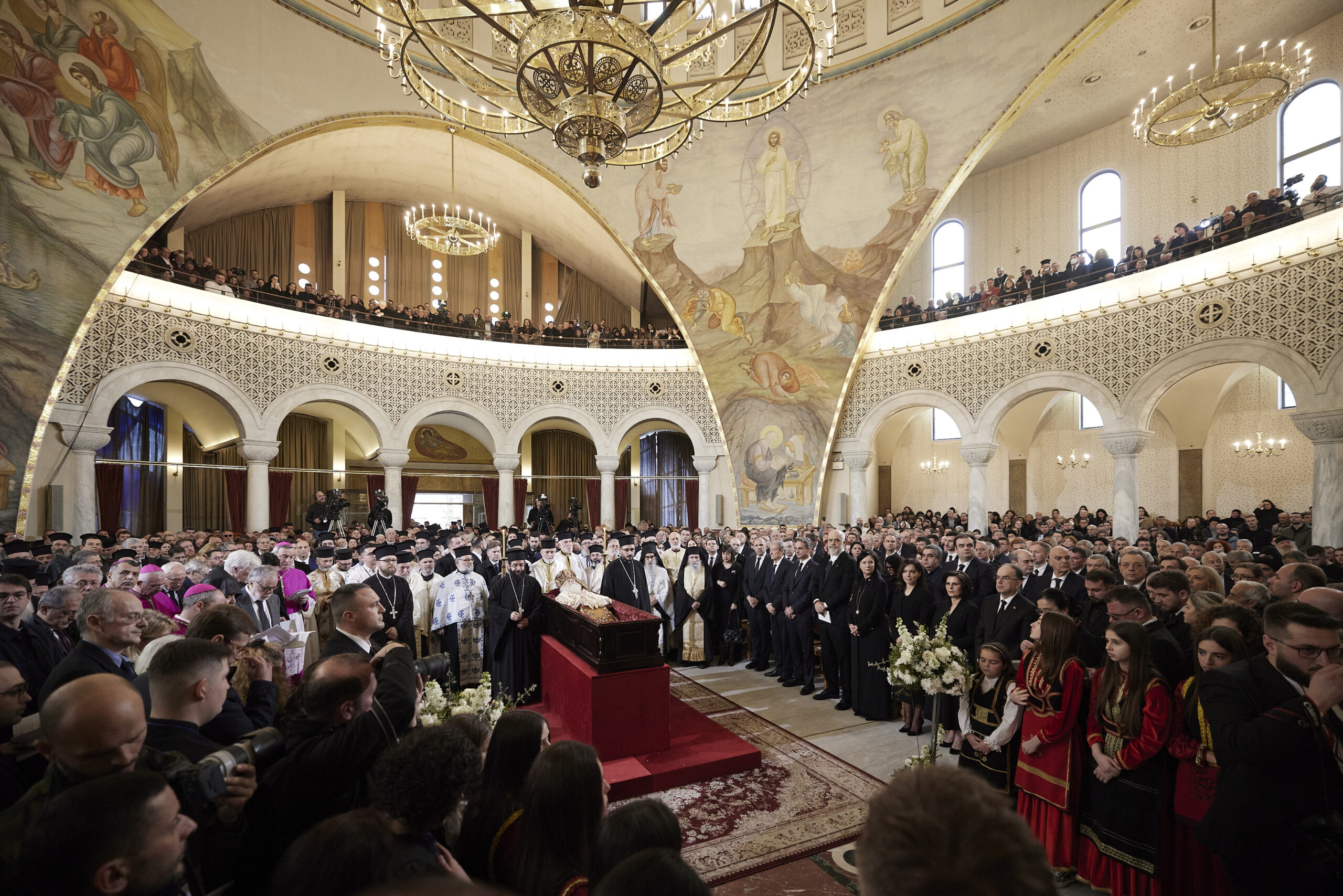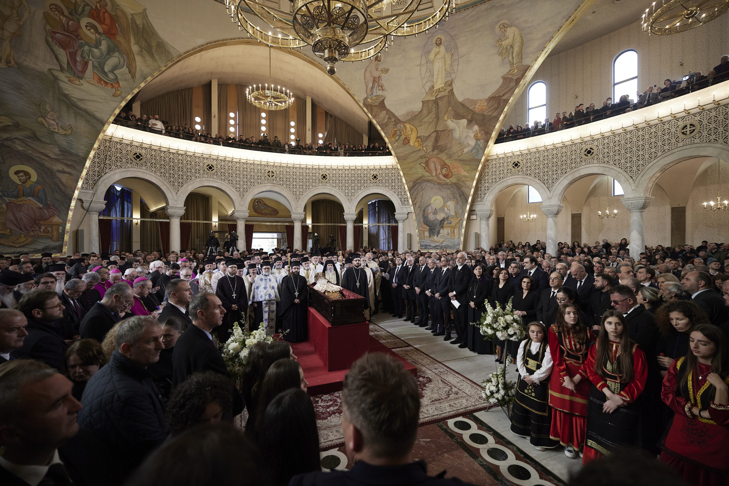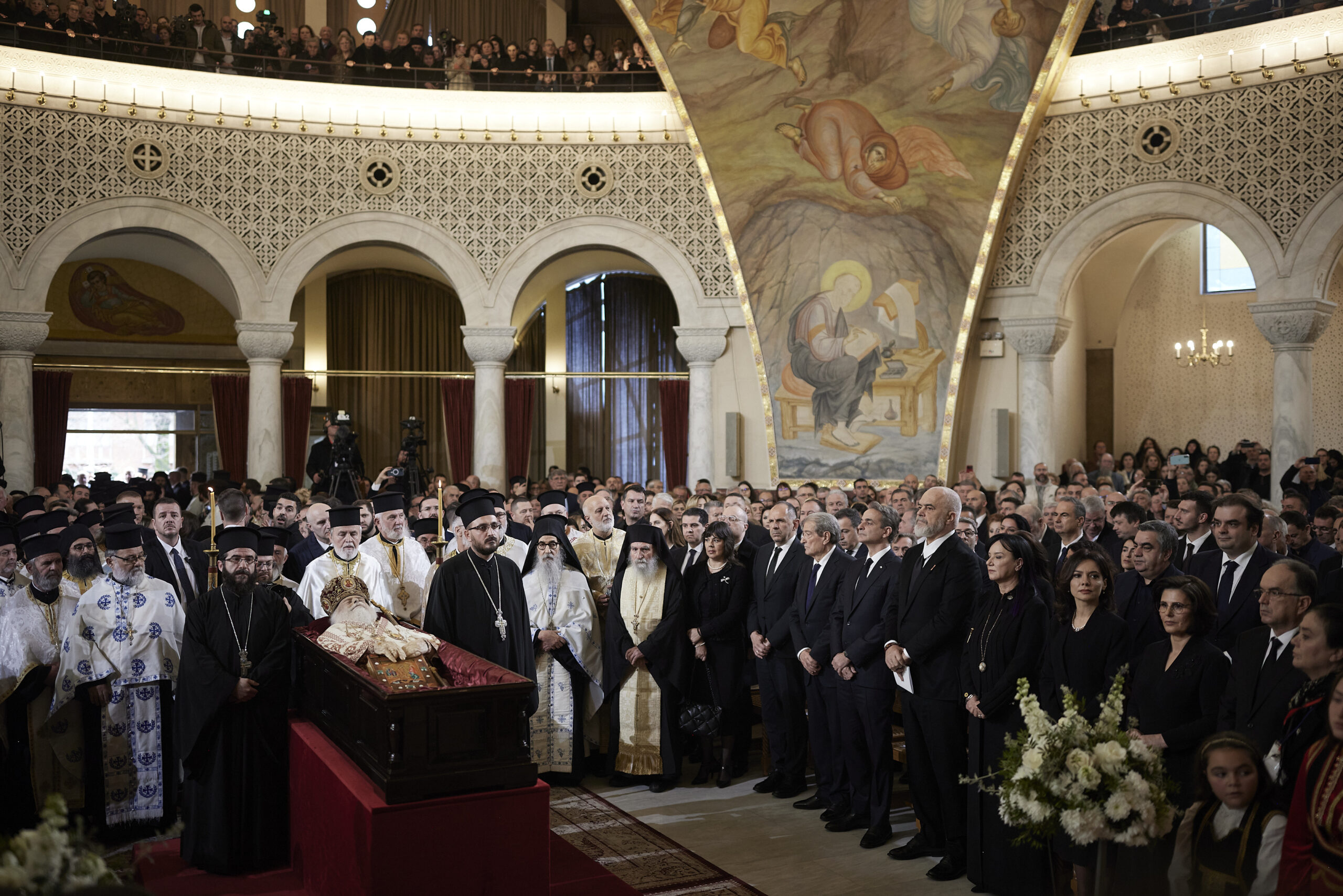 Οι επικήδειοι είναι σε εξέλιξη. Κατά την εξόδιο ακολουθία μιλούν ο Οικουμενικός Πατριάρχης, ο τοποτηρητής της Αρχιεπισκοπής Αλβανίας Μητροπολίτης Κορυτσάς Ιωάννης, ο συντονιστής του Παγκοσμίου Συμβουλίου Εκκλησιών Επίσκοπος Heinrich Bedform-Strohm, ο πρωθυπουργός της Ελλάδας Κυριάκος Μητσοτάκης και ο Έντι Ράμα.