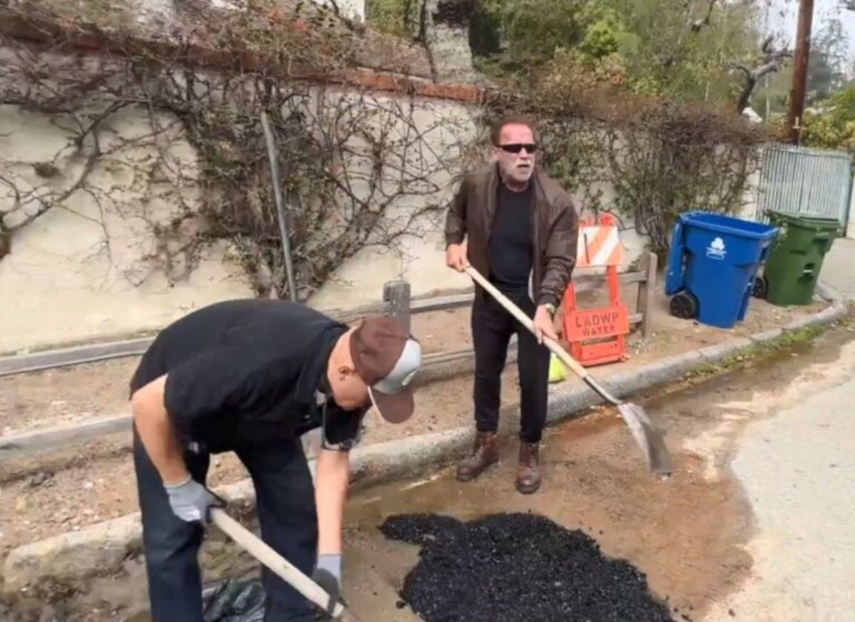 Ο διάσημος ηθοποιός του Χόλυγουντ και πρώην κυβερνήτης της Καλιφόρνια σε ανάρτησή του στα μέσα κοινωνικής δικτύωσης ανέβασε το σχετικό βίντεο, όπου φαίνεται να ρίχνει ασφαλτικό σκυρόδεμα (πίσσα) σε μια μεγάλη λακκούβα.