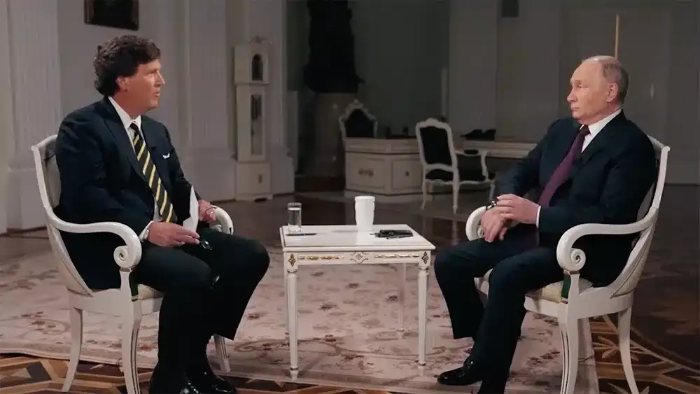 Πολλοί ήταν αυτοί που εστίασαν σε ένα στιγμιότυπο της συνέντευξης στον Κάρλσον, όπου ο Βλαντιμίρ Πούτιν φαίνεται να κρατά το πόδι σε μια κίνηση που ερμηνεύτηκε ως μία προσπάθεια να συγκρατήσει τρέμουλο στο πόδι του.