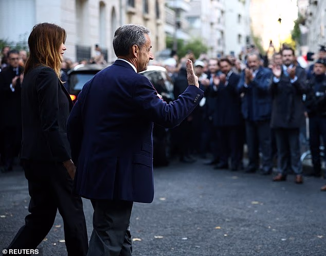 Ο Σαρκοζί, ο οποίος έχει ασκήσει έφεση κατά της καταδίκης του , προσπάθησε να αποφύγει να φωτογραφηθεί στις πύλες της φυλακής La Santé στα νότια του Παρισιού. Αντ’ αυτού, οργάνωσε μια εξαιρετικά οργανωμένη αναχώρηση από το σπίτι του στα δυτικά της πρωτεύουσας, όπου περπάτησε με τη σύζυγό του, την τραγουδίστρια Κάρλα Μπρούνι, για να χαιρετήσει τα πλήθη που είχαν συγκεντρωθεί στον δρόμο έξω.
