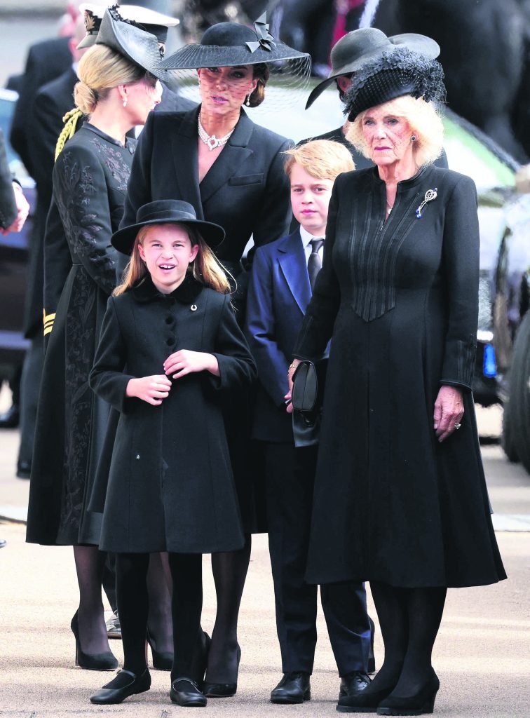 Η βασιλική σύζυγος Καμίλα, η πριγκίπισσα της Κορνουάλης Κέιτ, η κόμισσα του Ουέσεξ Σοφία και η μικρή Σάρλοτ, που φέρεται να έχει τη «βασιλική στόφα» περισσότερο από όλα τα παιδιά του πρίγκιπα Ουίλιαμ και όλα τα δισέγγονα της Ελισάβετ.