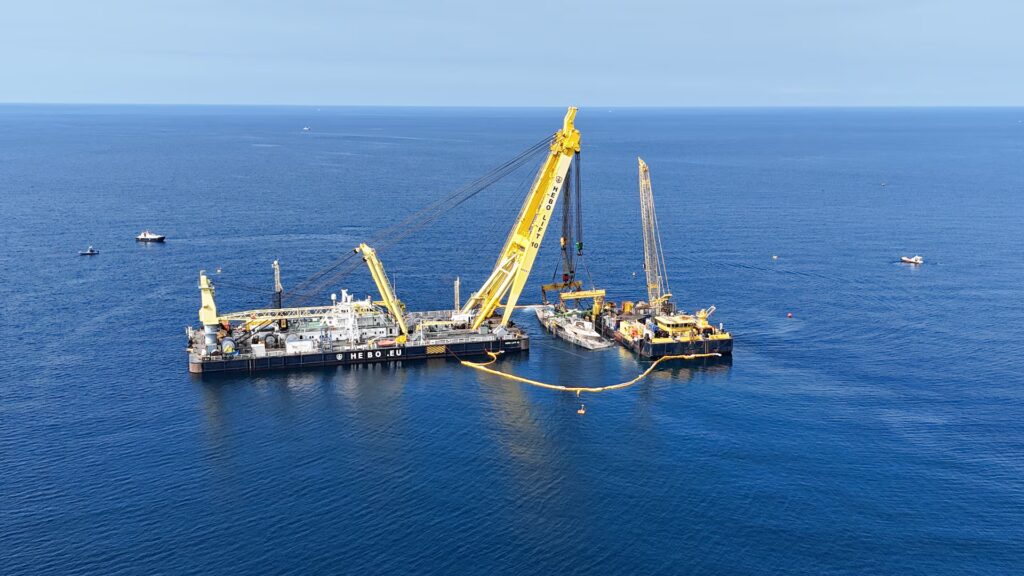 Η επιχείρηση, που κόστισε περίπου 30 εκατομμύρια δολάρια (22 εκατομμύρια λίρες), διευκολύνθηκε αφού το κατάρτι των 72 μέτρων αφαιρέθηκε με τη χρήση τηλεχειριζόμενου εργαλείου κοπής και τοποθετήθηκε στον βυθό την Τρίτη.