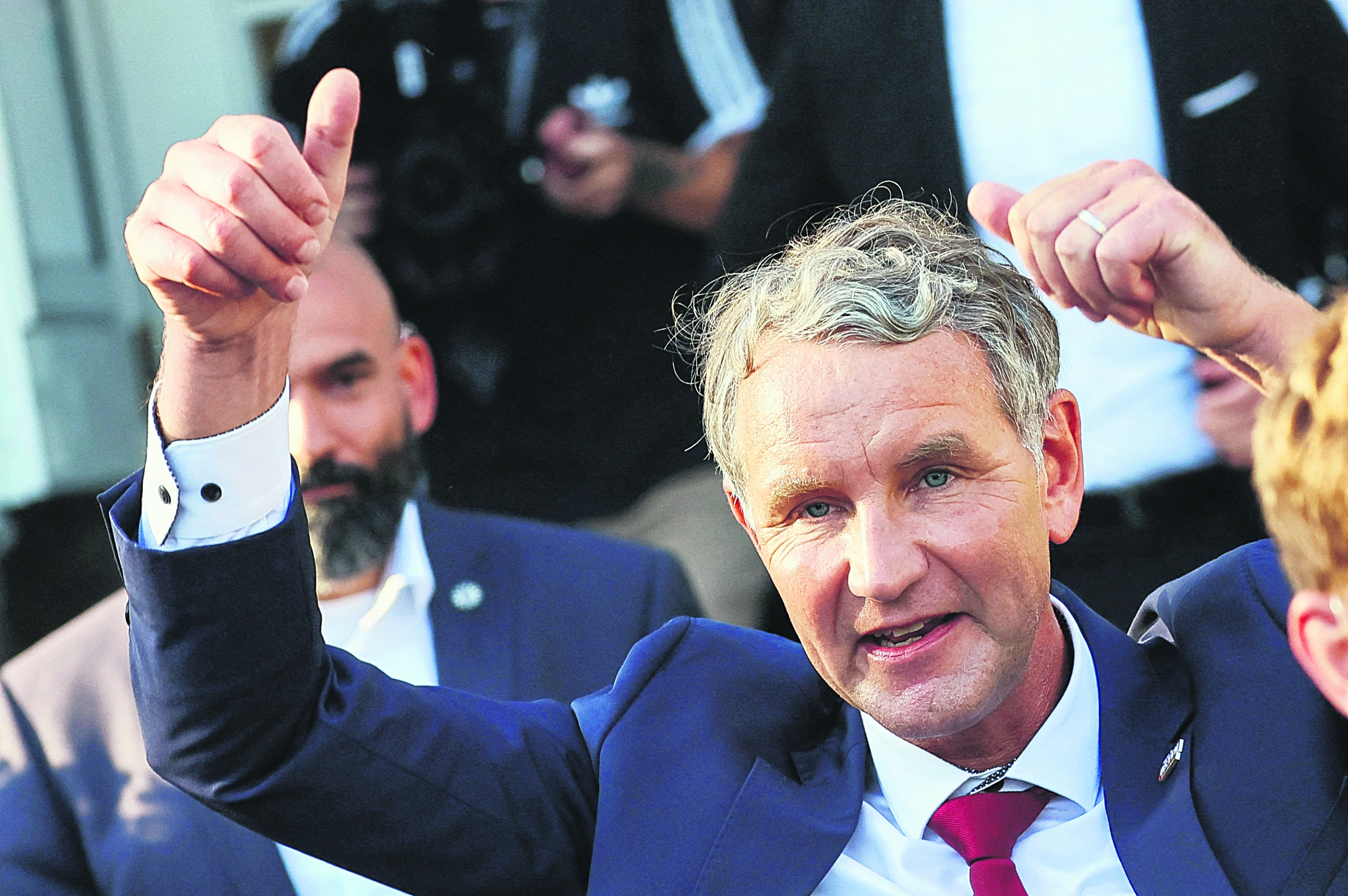 Πέμπτο: Οι υπηρεσίες εσωτερικής ασφαλείας της Γερμανίας κατατάσσουν το AfD του Χέκε στη Θουριγγία ως δεδομένα ακροδεξιό. Σε μια συνέντευξή του στη «Wall Street Journal» το 2017, ο Χέκε ισχυρίστηκε ότι «το μεγάλο πρόβλημα είναι ότι κάποιος παρουσιάζει τον Χίτλερ ως απολύτως κακό». Ενα γερμανικό δικαστήριο έκρινε τον Χέκε ως ένοχο επειδή χρησιμοποίησε εν γνώσει του τη φράση «Ολα για τη Γερμανία» σε ομιλίες (ένα σύνθημα χαραγμένο στα στιλέτα των στρατιωτών της SA, της παραστρατιωτικής πτέρυγας του ναζιστικού κόμματος). Το 2019, ένα άλλο γερμανικό δικαστήριο έκρινε ότι δεν θα ήταν συκοφαντικό να αποκαλεί τον Χέκε ως «φασίστα». Η ακροδεξιά αντιμεταναστευτική στάση του Χέκε ενισχύθηκε σαφώς μετά την επίθεση με μαχαίρι στο πρόσφατα φεστιβάλ του Σόλινγκεν.